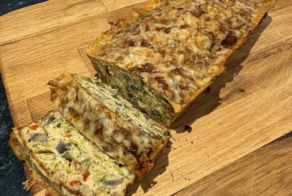 - Add egg, flour, baking powder, herbs and salt and pepper and mix into a thick batter